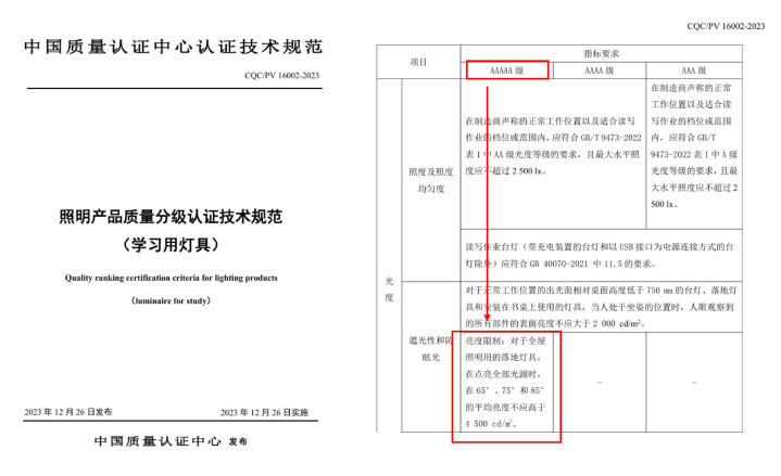 这亦然为什么在国度设施 《读写功课台灯性能条款》(GB/T 9473-2022) 以及中国质料认证中心发布的 《照明家具性量分级认证技艺圭表(学习器具)》 中,都对遮光性和防眩光提倡了明确条款。