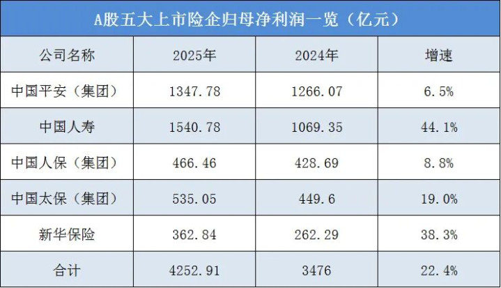 2025年,A股五大上市险企均达成了亮眼的事迹增长。