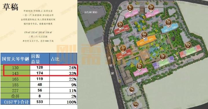 最终的定稿是130-227平,套均157平,130-143平占比56%。